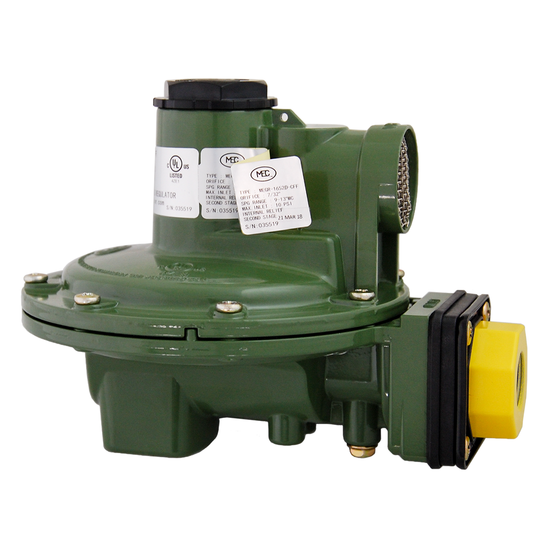 Regulator-2Nd 1/2" Fpt In 3/4" Fpt Out 1M Btu Dielectric Marshall Excelsior'S Megr-1652 Series Performance Exceeds Ul Test Requirements Providing Double Failure Overpressure Protection When Used With Select First Stage Regulators. | Marshall Excelsior | MEGR-1652D-CFF