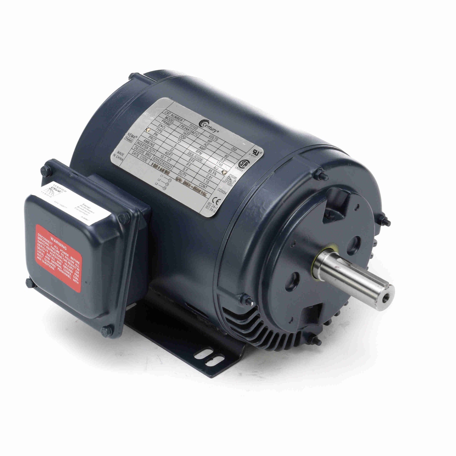 TO103 | General Purpose Motor | 1 HP | 3 Phase | ODP | 1748 RPM | 200 Volts - (Century)